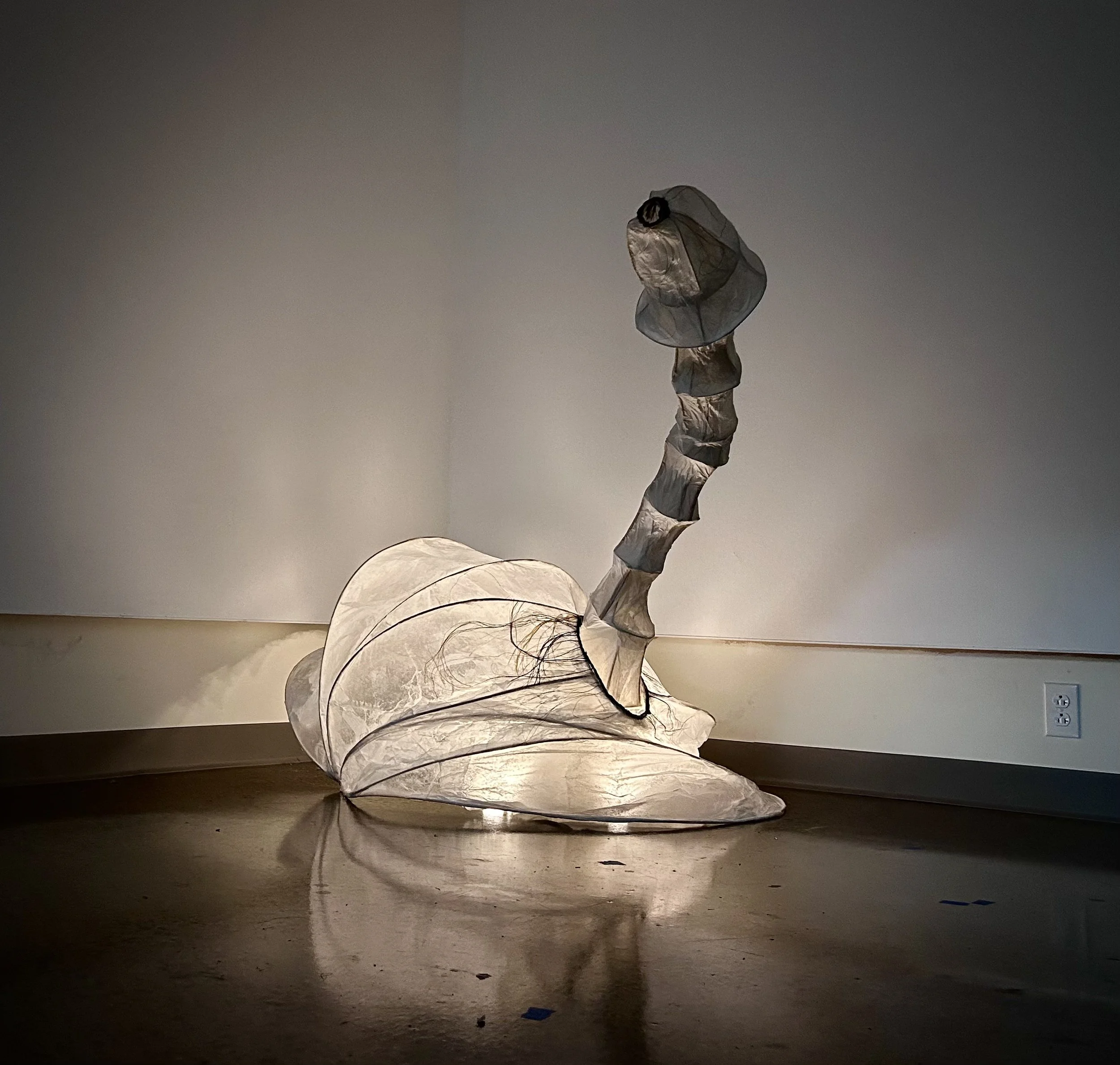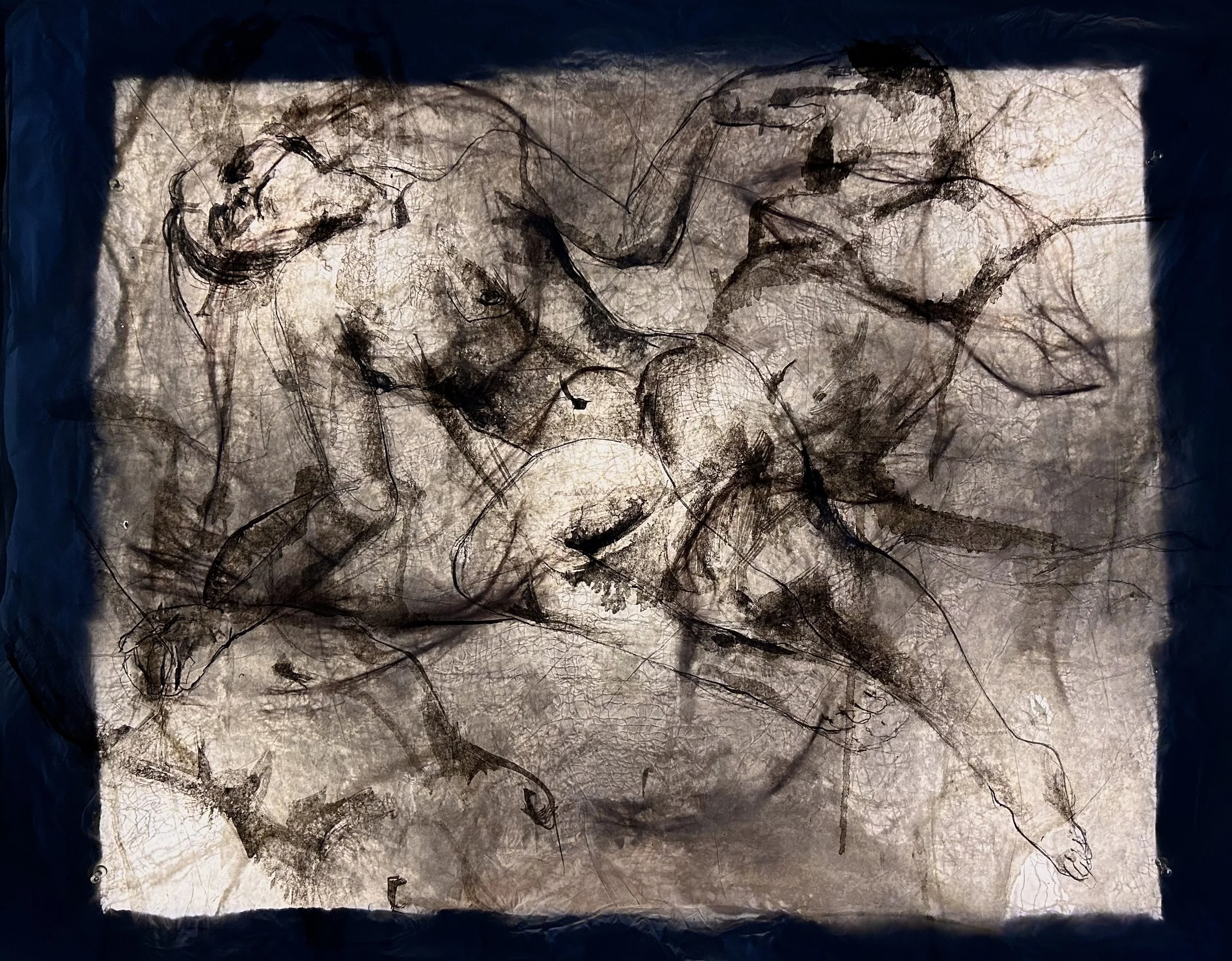 Tissue paper, ink, cheese cloth, horse hair, graphite, gloss medium